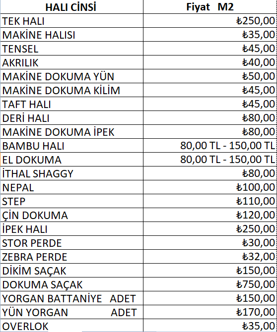 Fiyat Listesi